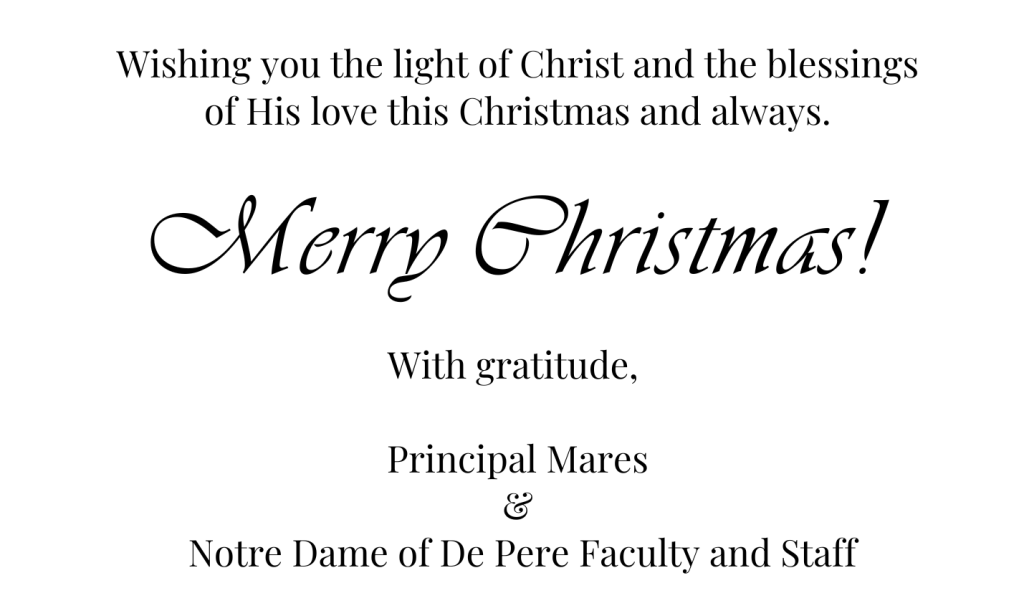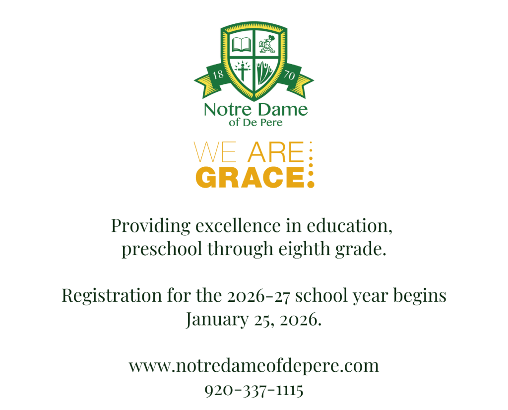 Notre Dame of De Pere School is part of the Green Bay Area Catholic Education (GRACE) School System. It is a private Catholic school serving Preschool and Elementary through 8th grade (PK3-8) with open enrollment. NDDP provides an individualized education in a faith-based environment. Each child is supported not only academically, but spiritually. The best way to learn more about NDDP is to visit! Click here to schedule a tour.